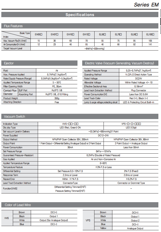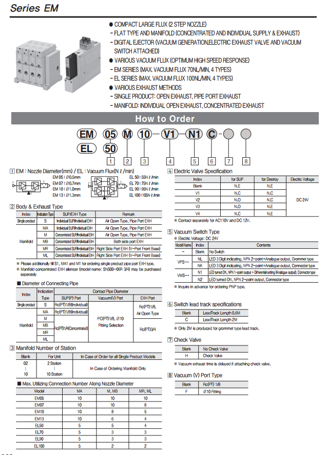 Bộ van chân không series EM- Lựa chọn đơn hàng và thông số kỹ thuật: