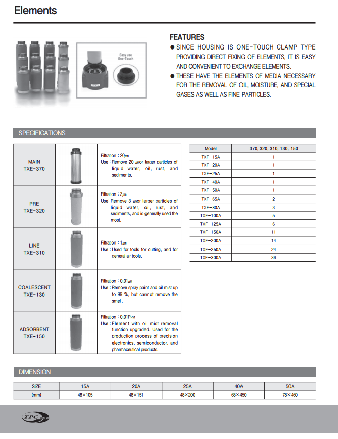Công ty Tự Động Hóa Cao Đạt xin giới thiệu tới quý khách hàng lõi lọc khí nén series TXE hiệu TPC Korea.
