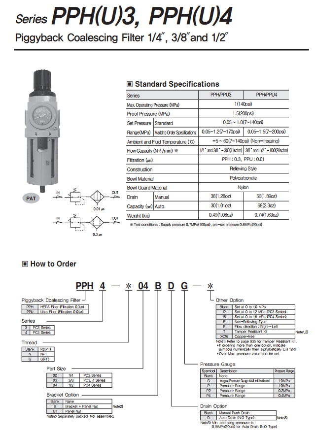 Model PPH: + Cấp lọc 0,3 Micron