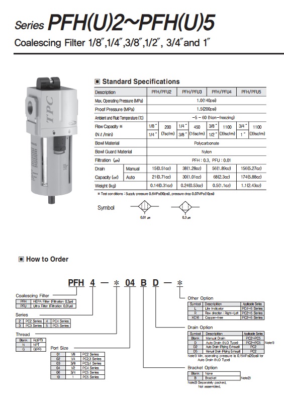 Cốc lọc Model PFH có chức năng tách nước, bụi và dầu bẩn