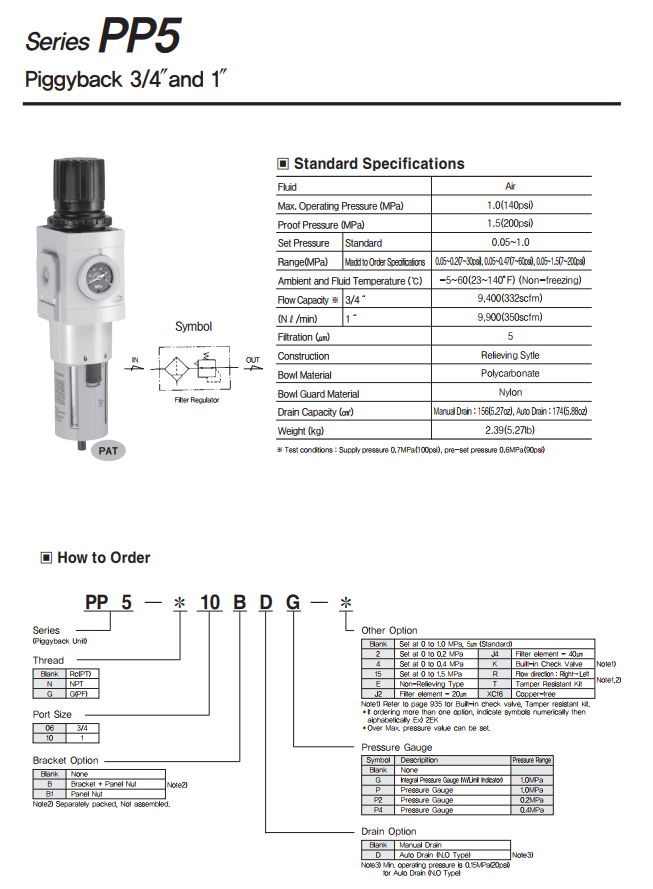 Model PP5 có chức năng lọc tách nước, tách bẩn điều chỉnh khí đến áp lực yêu cầu để đi sử dụng.