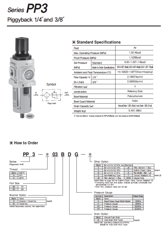 Model PP3 có chức năng lọc tách nước, tách bẩn điều chỉnh khí đến áp lực yêu cầu để đi sử dụng.