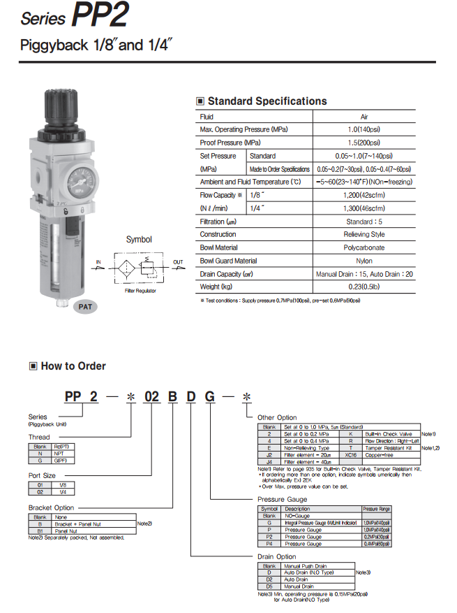 Model PP2 có chức năng lọc tách nước, tách bẩn điều chỉnh khí đến áp lực yêu cầu để đi sử dụng.