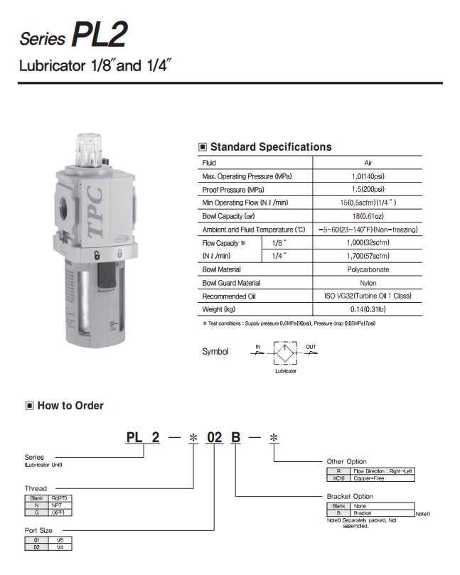 Model PL2 là cốc chứa dầu để theo khí đi bôi trơn van, xi lanh và bộ phận sử dụng khí nén khác.
