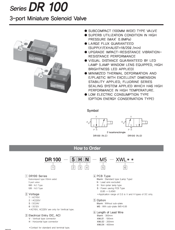 Van điện từ DR 100 - lựa chon đơn hàng - Thông số kỹ thuật:
