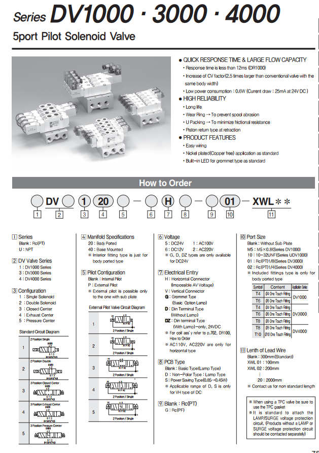 Van điện từ DV là dòng van có thân nhỏ, có thể lắp độc lập, hoặc lắp nhiều van cùng cỡ chung trên 1 đế tạo thành block. Trên block van này, có thể lắp các sơ đồ vị trí van khác nhau và sử dụng LPC để điều khiển. Series van này được sử dụng rộng rãi điều khiển thích hợp cho xi lanh có kích thước nhỏ, lượng tiêu thụ khí ít.