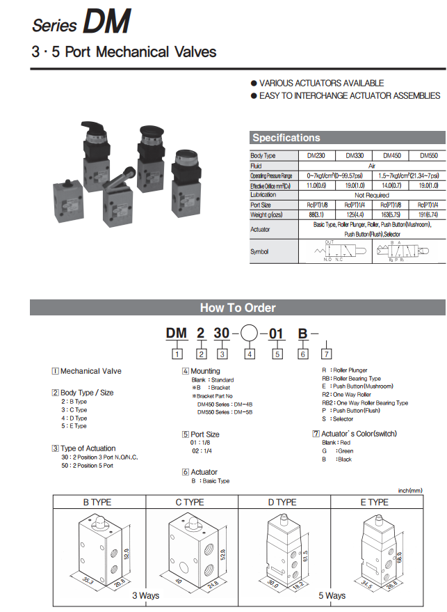 Model DM là loại van cơ điều khiển bằng tay hoặc dưới dạng công tắc hành trình để đóng mở cửa khí.