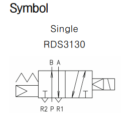 Van điện từ RDS 3130: Là dòng van 5 cửa, sử dụng 1 cuộn từ, điều khiển con trượt bên trong thân van, làm thay đổi trạng thái của van, đưa khí nén qua 2 cửa A và B đi sử dụng, tác động trực tiếp đến piston làm chuyển động tịnh tiến trục xi lanh.