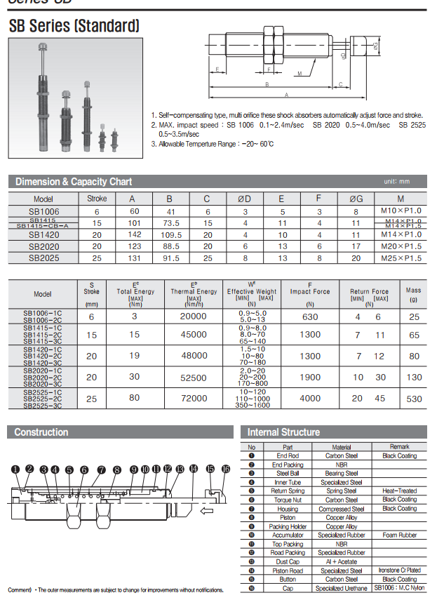 Xi lanh giảm chấn SB tiêu chuẩn có các model sau: