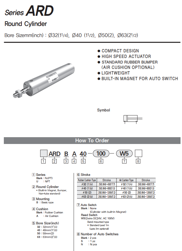 Xi lanh khí ARD được thiết kế compact, xi lanh làm việc có tốc độ cao có thể lựa chọn đóng xả nhanh. Kiểu tác động kép 2 chiều khí ( Double Acting)
