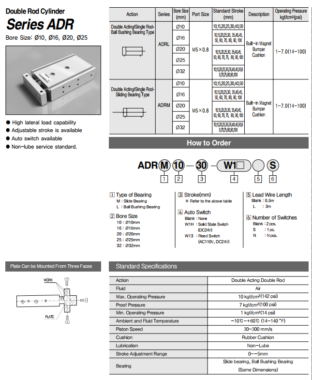 Xi lanh ADR là dòng xi lanh thiết kế compact sử dụng 2 trục và 2 kiểu tác động:
