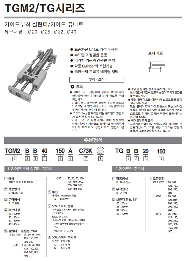 - Chú ý: Sử dụng xi lanh TMG2 / TG có thể lựa chọn kết hợp thêm: