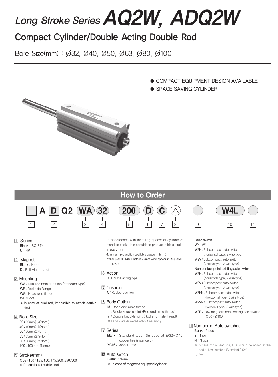 - Chú ý: Khi sử dụng xi lanh AQ2W/ADQ2W ta có thể lựa chọn thêm: