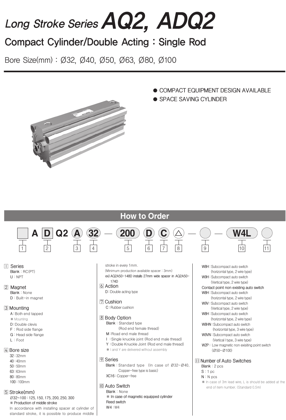 Xi lanh compact hành trình dài AQ2 / ADQ2 có các model sau: