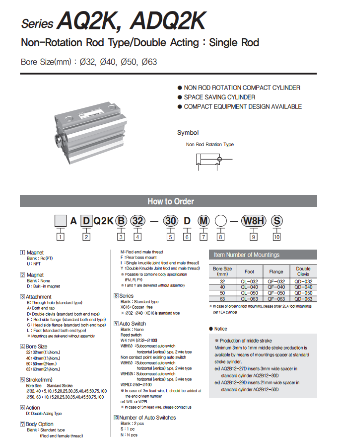 - Chú ý: Sử dụng xi lanh AQ2K / ADQ2K có thể lựa chọn thêm: