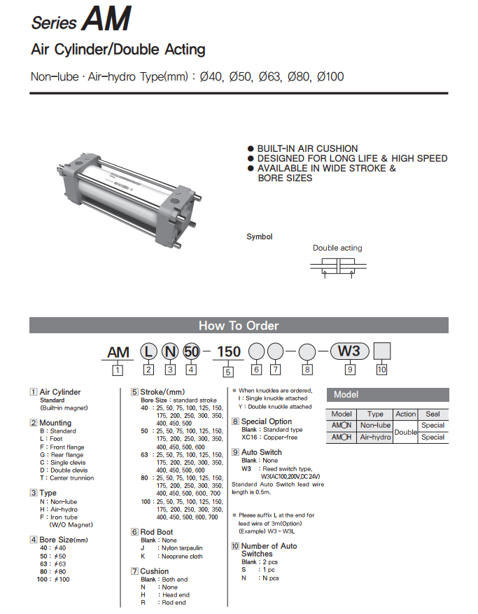 Xi lanh tròn 2 đầu trục tác động kép AXW -TPC