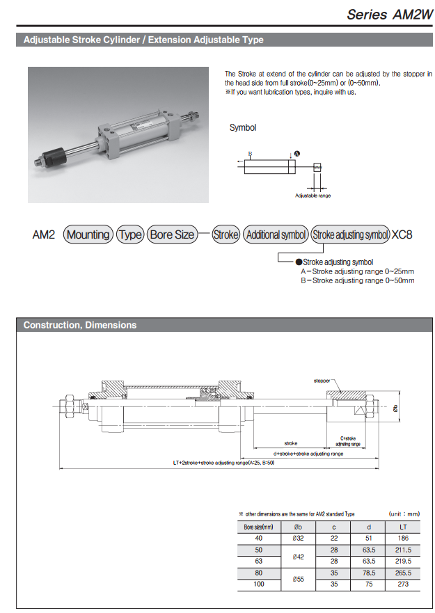 Xi lanh điều chỉnh hành trình AM2W-TPC