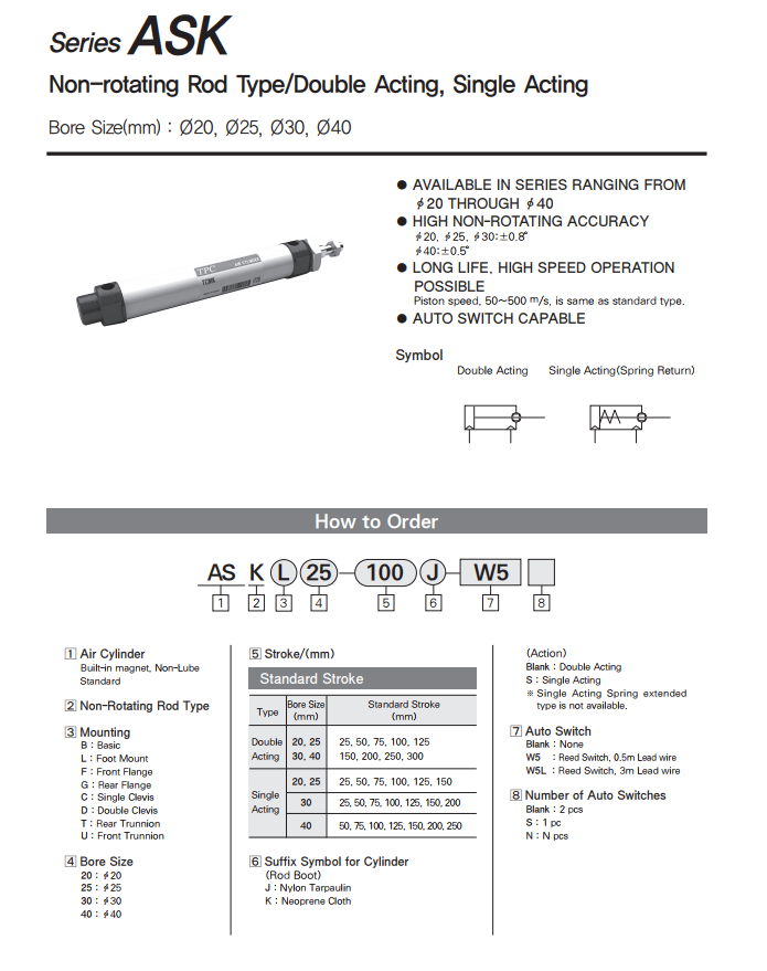 Xi lanh tròn chống xoay tác động đơn AXKS-TPC
