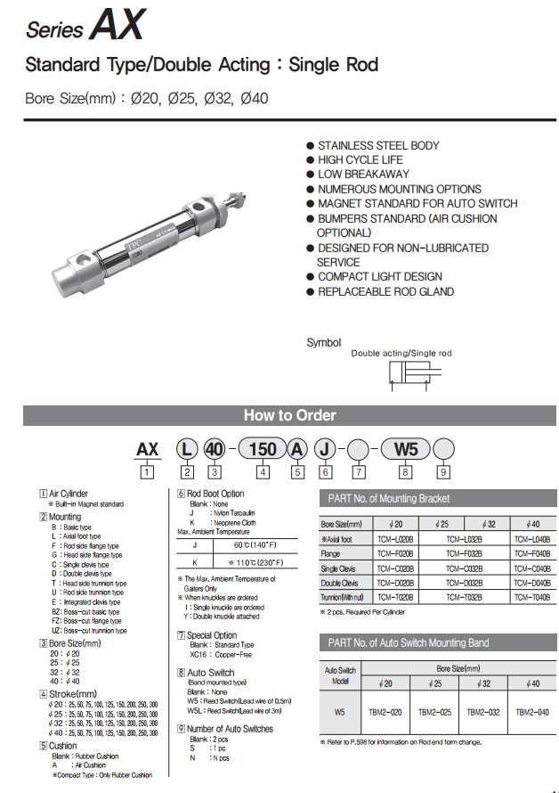 Xi lanh tròn 2 đầu trục tác động kép AXW -TPC
