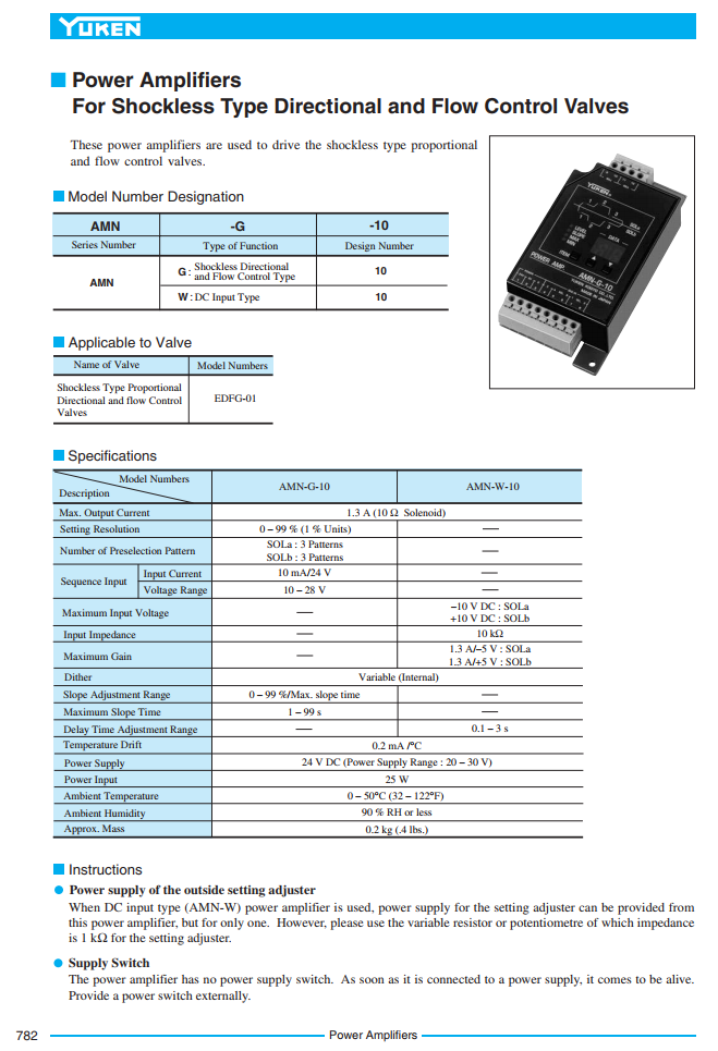 Công ty Thiết Bị Tự Động Hóa Cao Đạt xin gửi tới quý khách hàng sản phẩm bộ Power Amlifier AMN hiệu yuken Japan. Power Amlifier AMN là bộ điều khiển chống sốc cho van điều khiển tỷ lệ, thiết kế nhỏ gọn, tiết kiệm diện tích, hoạt động chính xác, hiệu quả cao.