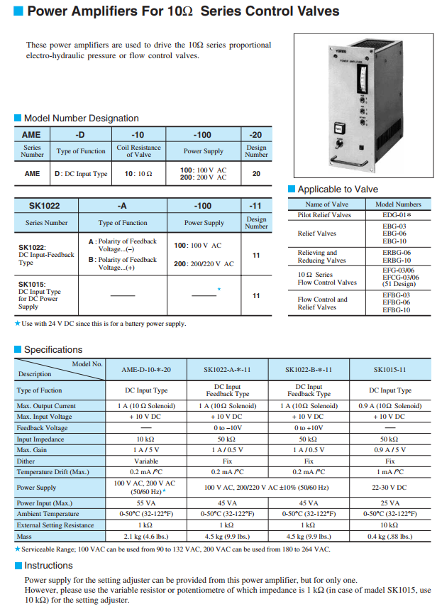 Bộ Amplifiers cho van điều khiển 10Ω AME-Yuken